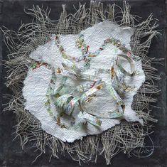 Rechercher son itinéraire, son chemin, construire son parcours…Tel un autoportrait. Le relevé topographique de notre Être...Les cartes routières sont riches d'une multitude de signes topographiques qui représentent des objets ou détails de toute nature: routes, villages, bois, rivières...Cette matière première déstructurée permet de recréer une nouvelle carte où l'agencement des signes conventionnels constitue un nouveau relevé topographique.