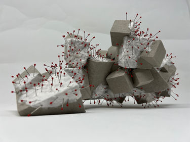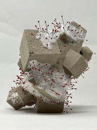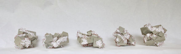 La série White Gold,… symbolisent une source de Vie et de subsistance. Elles sont des représentations fictives de matrices nutritionnelles sous formes de plaques ou bien d’agrégats à structures cubiques, dont la texture suggère celle du béton. Des d’éléments de petites tailles y sont greffés, ceux-ci sont constitués de fins filaments blancs, semblables à des microorganismes ou bien des lichens (organismes vivants faisant partie des premiers maillons de la longue chaîne alimentaire du monde des vivants). Dans cette représentation fictive, les plaques sont la représentation d’une culture nutritionnelle, tandis que les agrégats, celle de la re-colonisation de territoires stériles par des organismes vivants.